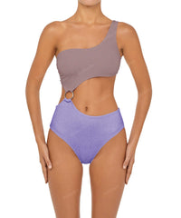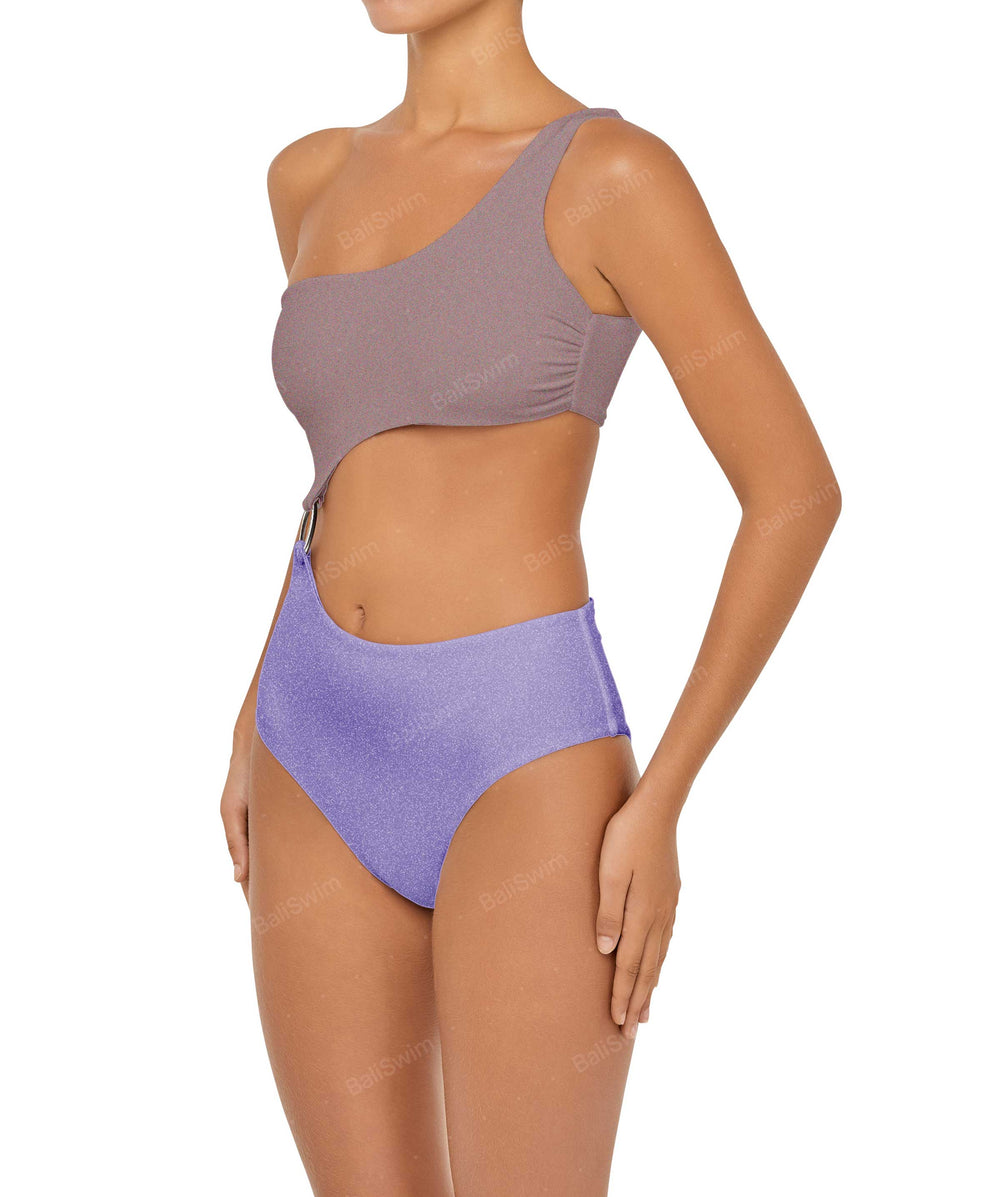 - Detail Feature: One shoulder swimsuit, Connecting O-ring detail, Cut out detail, High rise