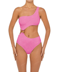 - Detail Feature: One shoulder swimsuit, Connecting O-ring detail, Cut out detail, High rise