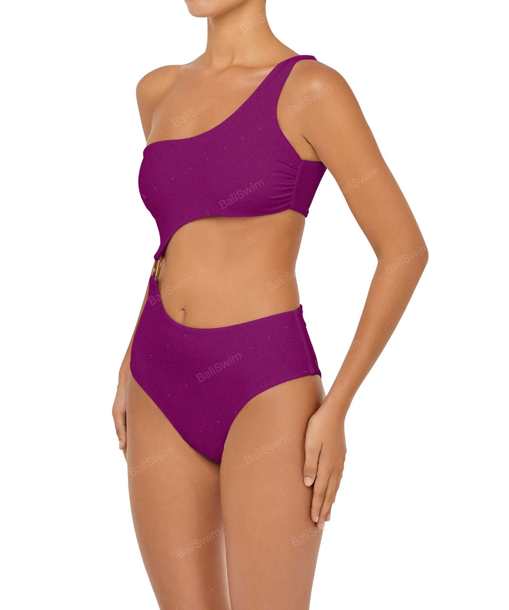 - Detail Feature: One shoulder swimsuit, Connecting O-ring detail, Cut out detail, High rise