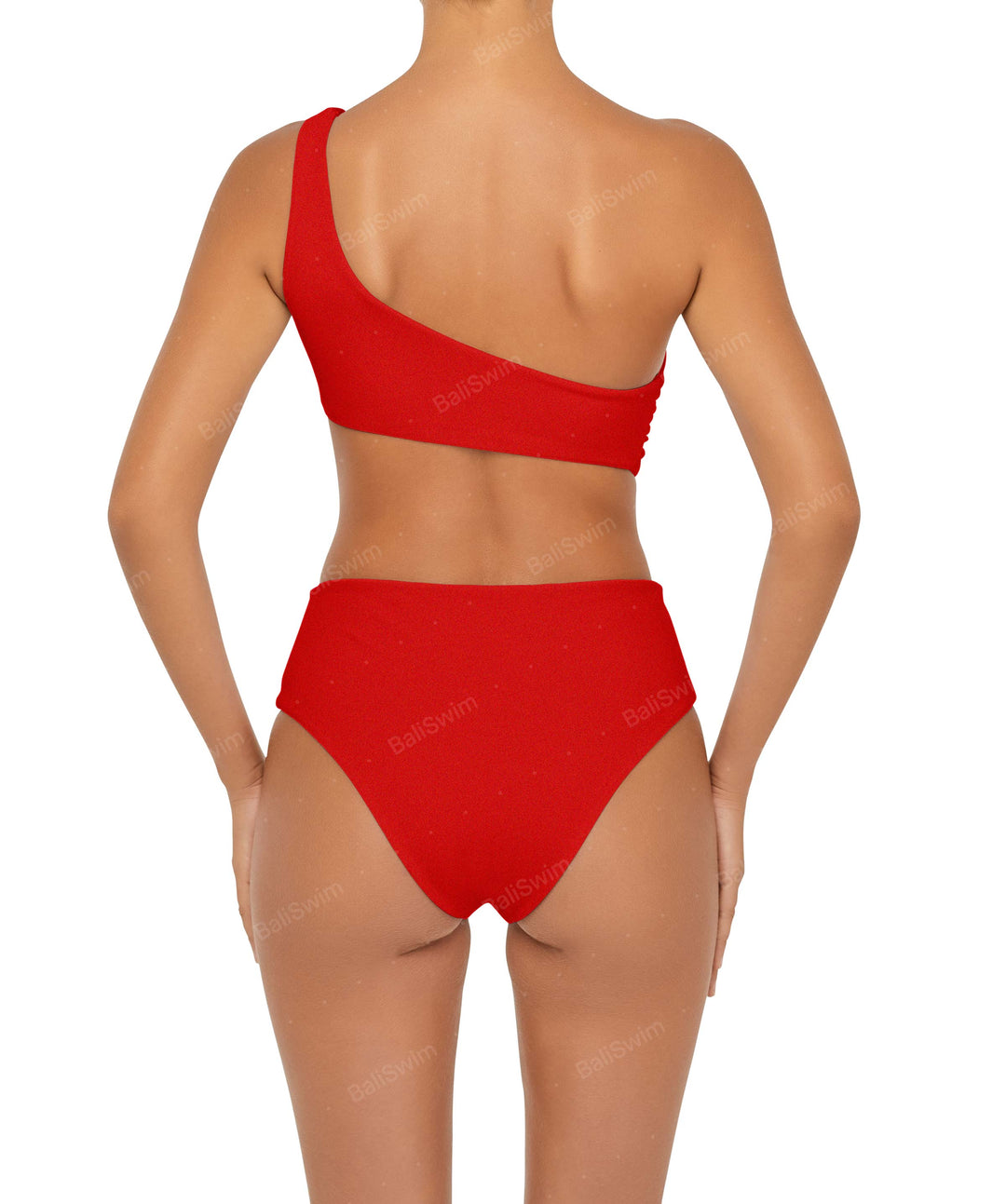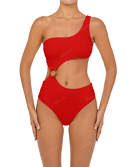 - Detail Feature: One shoulder swimsuit, Connecting O-ring detail, Cut out detail, High rise