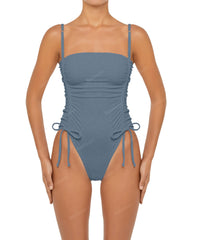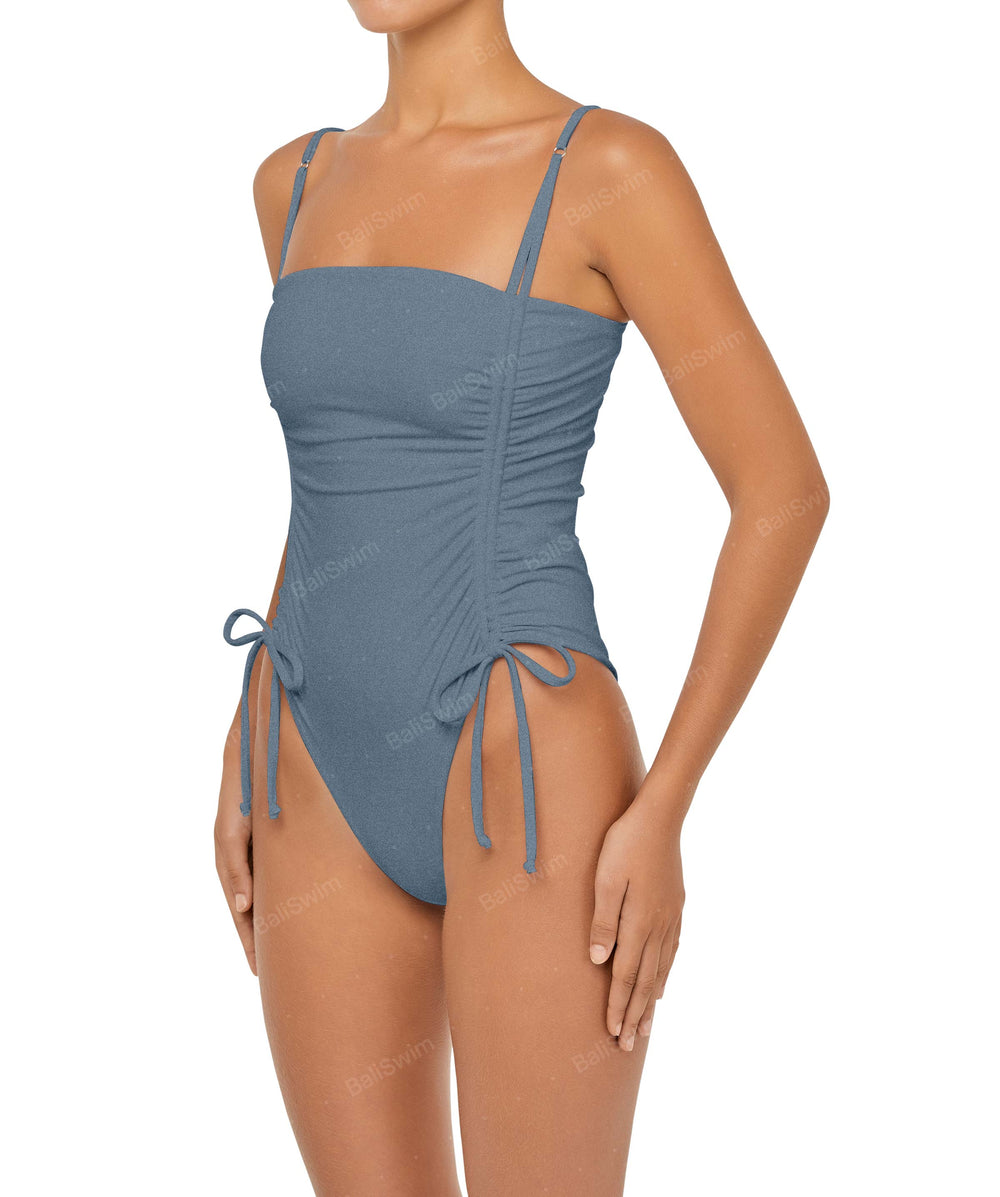- Detail Feature: Square neck swimsuit, Adjustable gathered detail on princess line, Adjustable straps, Adjustable leg opening