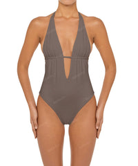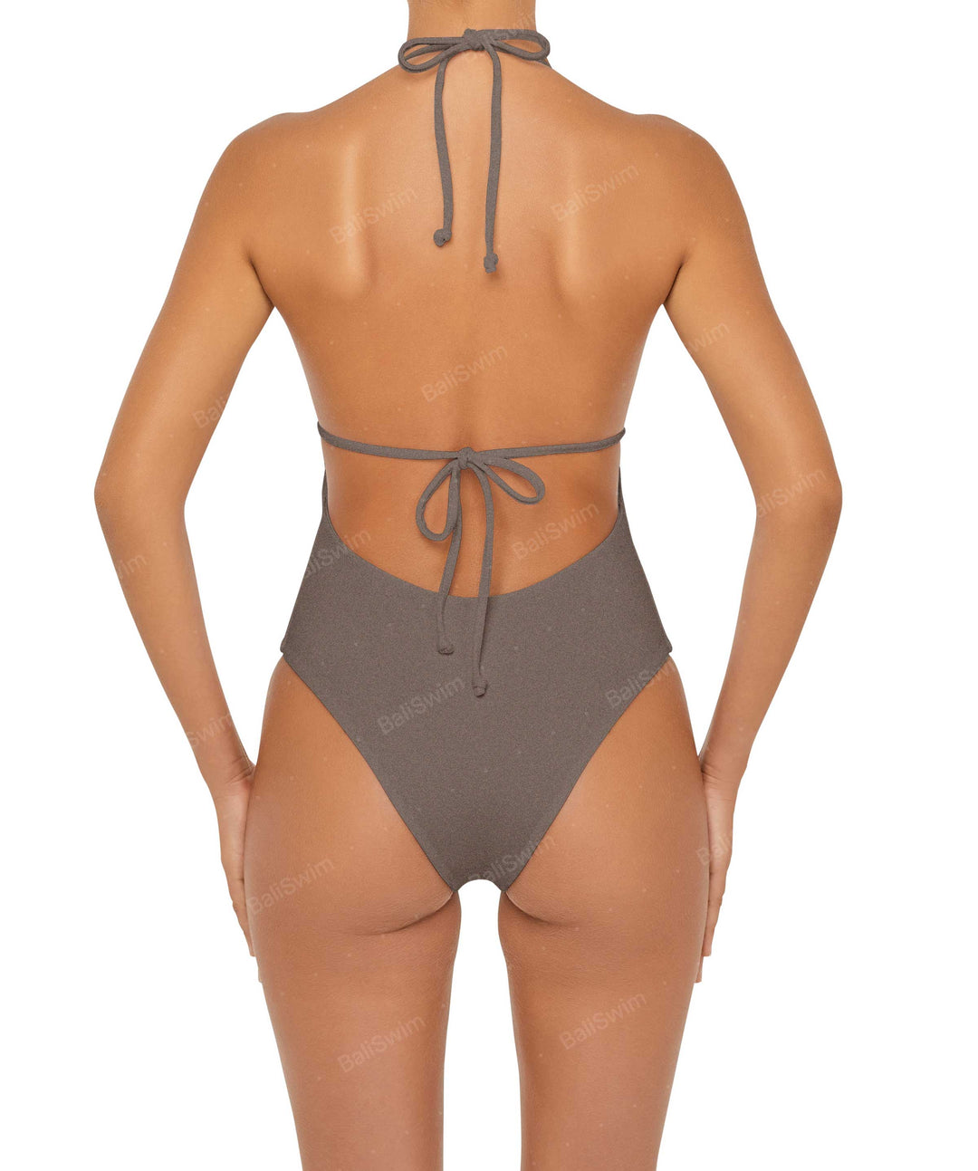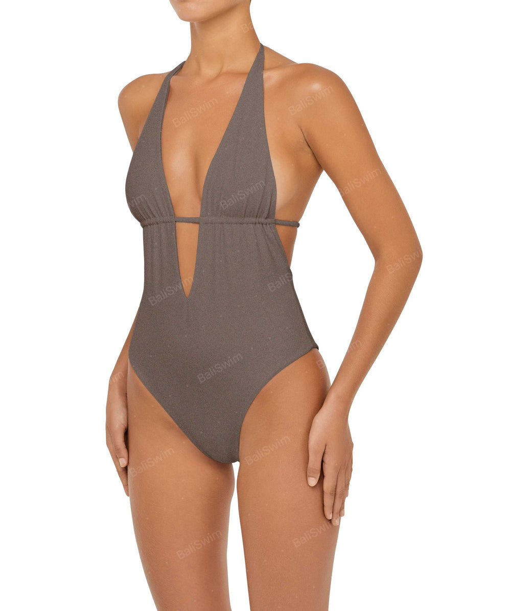- Detail Feature: Plunge V-neck One piece, Halter ties, Adjustable underbust, Adjustable tie closure, Low back