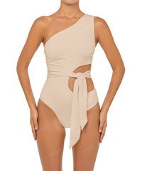 - Detail Feature: One shoulder one piece, Cut out detail, Removable sash