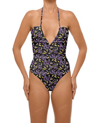 - Style: Ruched Halter One Piece