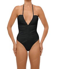 - Style: Ruched Halter One Piece