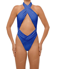 - Detail Feature: Halter cut out one piece, Adjustable halter ties, Criss cross neck, Ruched waist and side seam, Low V-waist, High cut, Low back