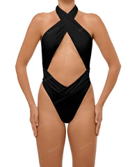 - Detail Feature: Halter cut out one piece, Adjustable halter ties, Criss cross neck, Ruched waist and side seam, Low V-waist, High cut, Low back