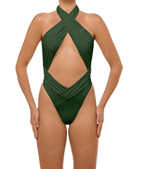 - Detail Feature: Halter cut out one piece, Adjustable halter ties, Criss cross neck, Ruched waist and side seam, Low V-waist, High cut, Low back