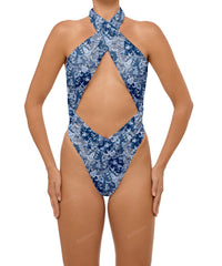 - Detail Feature: Halter cut out one piece, Adjustable halter ties, Criss cross neck, Ruched waist and side seam, Low V-waist, High cut, Low back