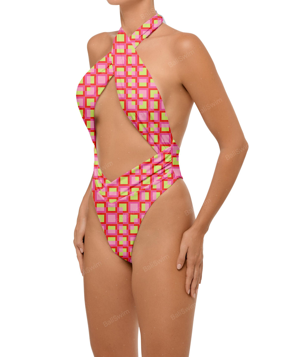 - Detail Feature: Halter cut out one piece, Adjustable halter ties, Criss cross neck, Ruched waist and side seam, Low V-waist, High cut, Low back
