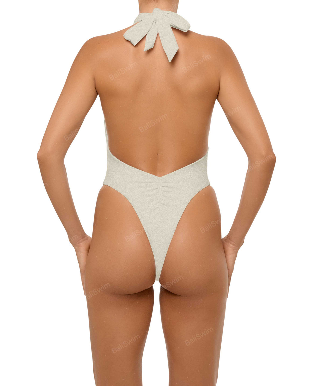 - Detail Feature: Halter cut out one piece, Adjustable halter ties, Criss cross neck, Ruched waist and side seam, Low V-waist, High cut, Low back