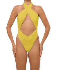 - Detail Feature: Halter cut out one piece, Adjustable halter ties, Criss cross neck, Ruched waist and side seam, Low V-waist, High cut, Low back