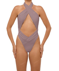 - Detail Feature: Halter cut out one piece, Adjustable halter ties, Criss cross neck, Ruched waist and side seam, Low V-waist, High cut, Low back