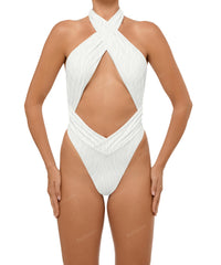 - Detail Feature: Halter cut out one piece, Adjustable halter ties, Criss cross neck, Ruched waist and side seam, Low V-waist, High cut, Low back