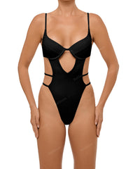 - Detail Feature: V-underwired one piece, Cut out detail, Waist strap detail, Adjustable shoulder straps, High cut