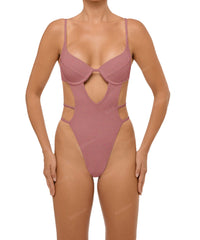 - Detail Feature: V-underwired one piece, Cut out detail, Waist strap detail, Adjustable shoulder straps, High cut