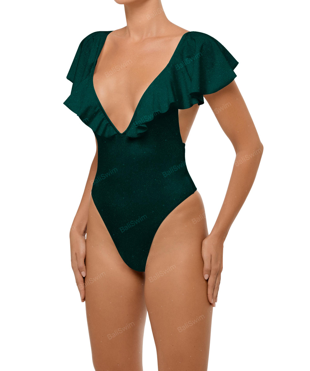 - Detail Feature: Flounce sleeves, Low V-neck, Low back, High cut