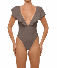 - Detail Feature: Flounce sleeves, Low V-neck, Low back, High cut