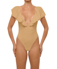 - Detail Feature: Flounce sleeves, Low V-neck, Low back, High cut