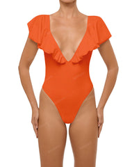- Detail Feature: Flounce sleeves, Low V-neck, Low back, High cut