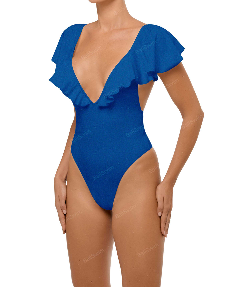 - Detail Feature: Flounce sleeves, Low V-neck, Low back, High cut