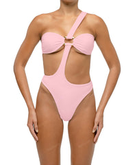 - Detail Feature: One shoulder detail, Wave ring detail, Front and back cut-out, High cut, Clasp closure