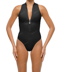 - Detail Feature: Rashguard style, High neck with zipper, High cut