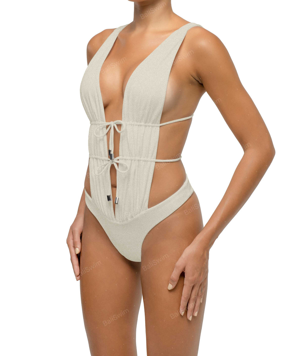 - Detail Feature: Deep V cut-out, Adjustable front coverage, Strappy detail, High cut