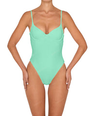 - Detail Feature: Classic underwire one piece with adjustable straps, high leg opening, back cut-out and back clasp
