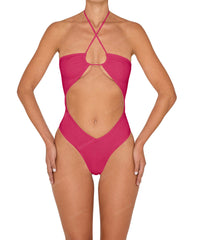 BSWS-S82 Halter Tie Neck One Piece With Center Front Cutout