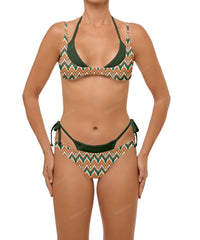 - Detail Feature: Double triangle bikini top, Adjustable halter neckline, Adjustable tie closure