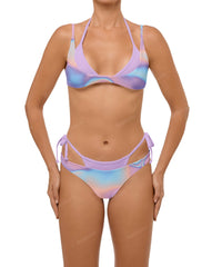 - Detail Feature: Double triangle bikini top, Adjustable halter neckline, Adjustable tie closure