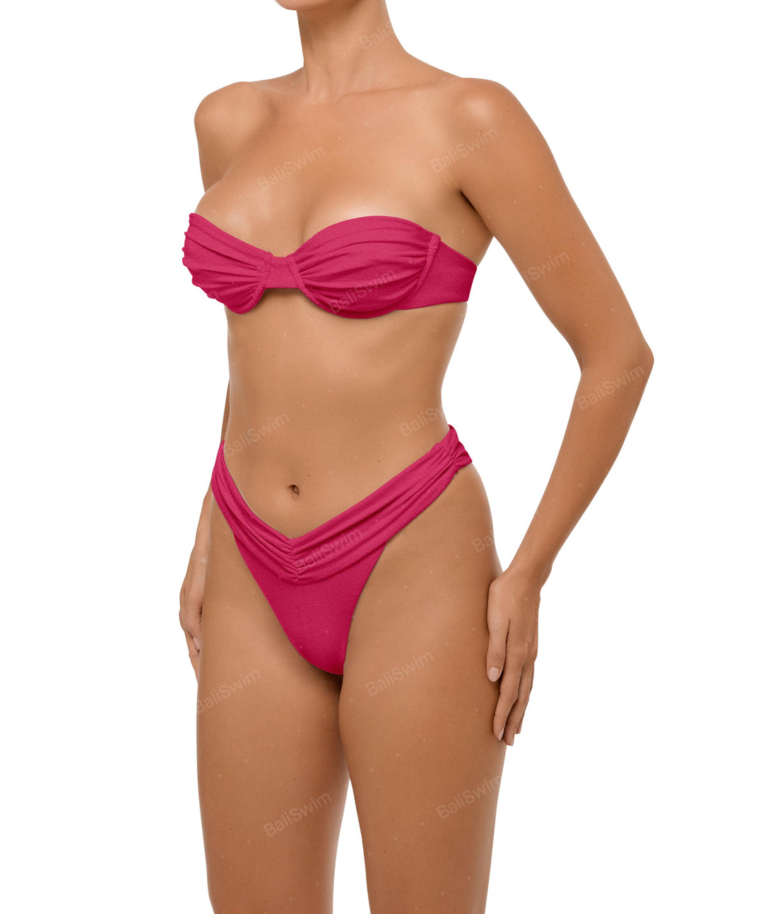 - Detail Feature: Underwire bandeau bikini top, Gathered bust detail, Clasp Closure