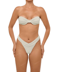 - Detail Feature: Underwire bandeau bikini top, Gathered bust detail, Clasp Closure