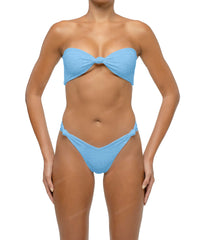- Detail Feature: Bandeau bikini top, Sweetheart neckline, Front knottedd detail, Pull on style