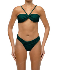 - Detail Feature: Halter bandeau bikini top, Front loop bandeau, Draped detail, Adjustable shoulder straps, Adjustable tie closure