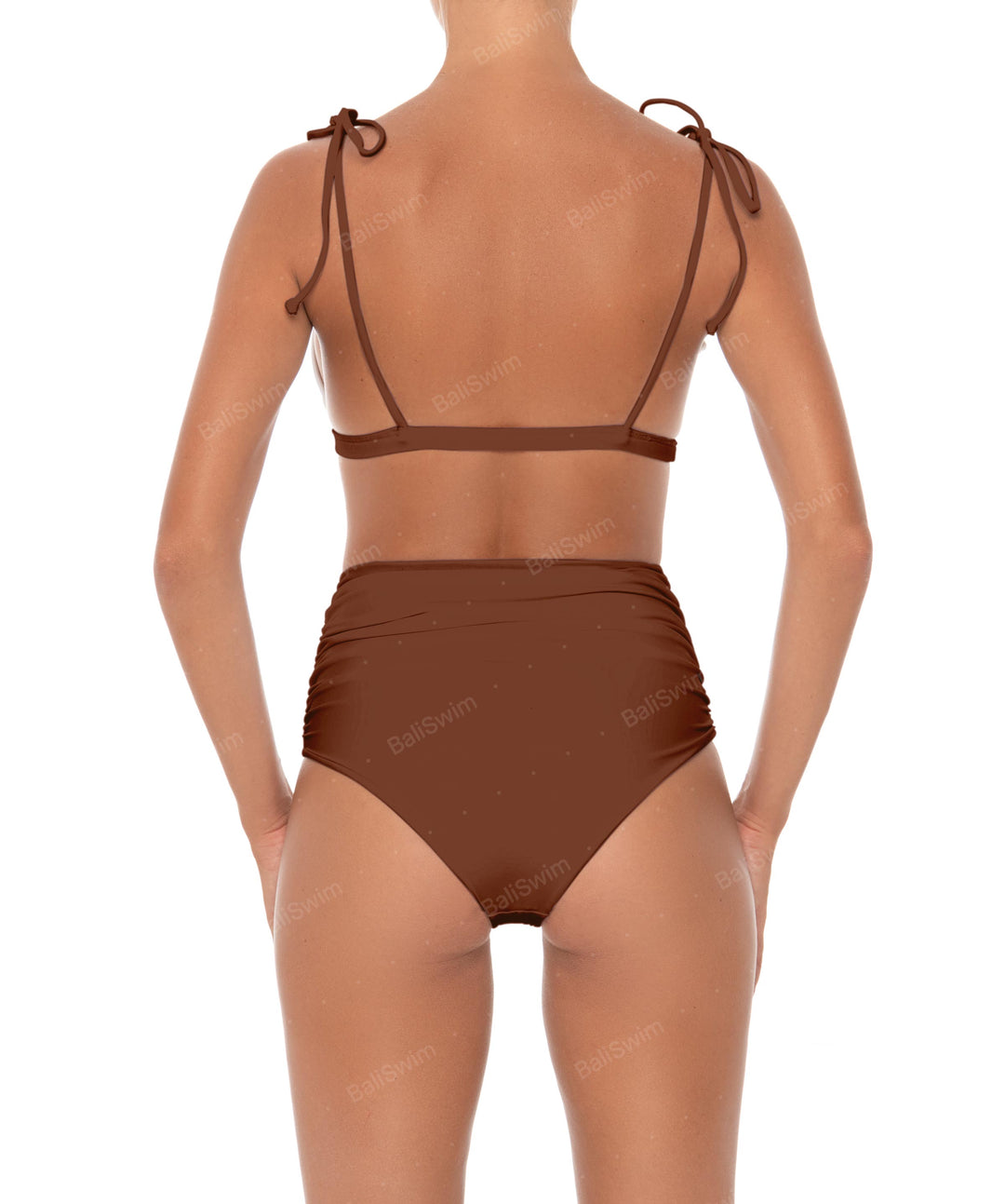 - Detail Feature: Gathered Bust Panels with Adjustable Tie Straps