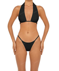 - Detail Feature: Halter bikini top, Adjustable underbust, Adjustable tie closure