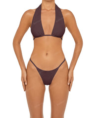 - Detail Feature: Halter bikini top, Adjustable underbust, Adjustable tie closure