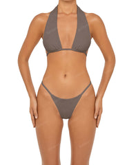 - Detail Feature: Halter bikini top, Adjustable underbust, Adjustable tie closure