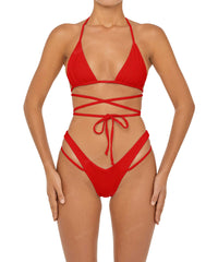 - Detail Feature: Triangle Bikini Top, Adjustable underbust, Halter ties, Adjustable wrap around straps detail