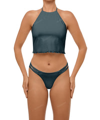 - Detail Feature: Tankini camisole style, Halter Neckline, High neck, Adjustable tie closure