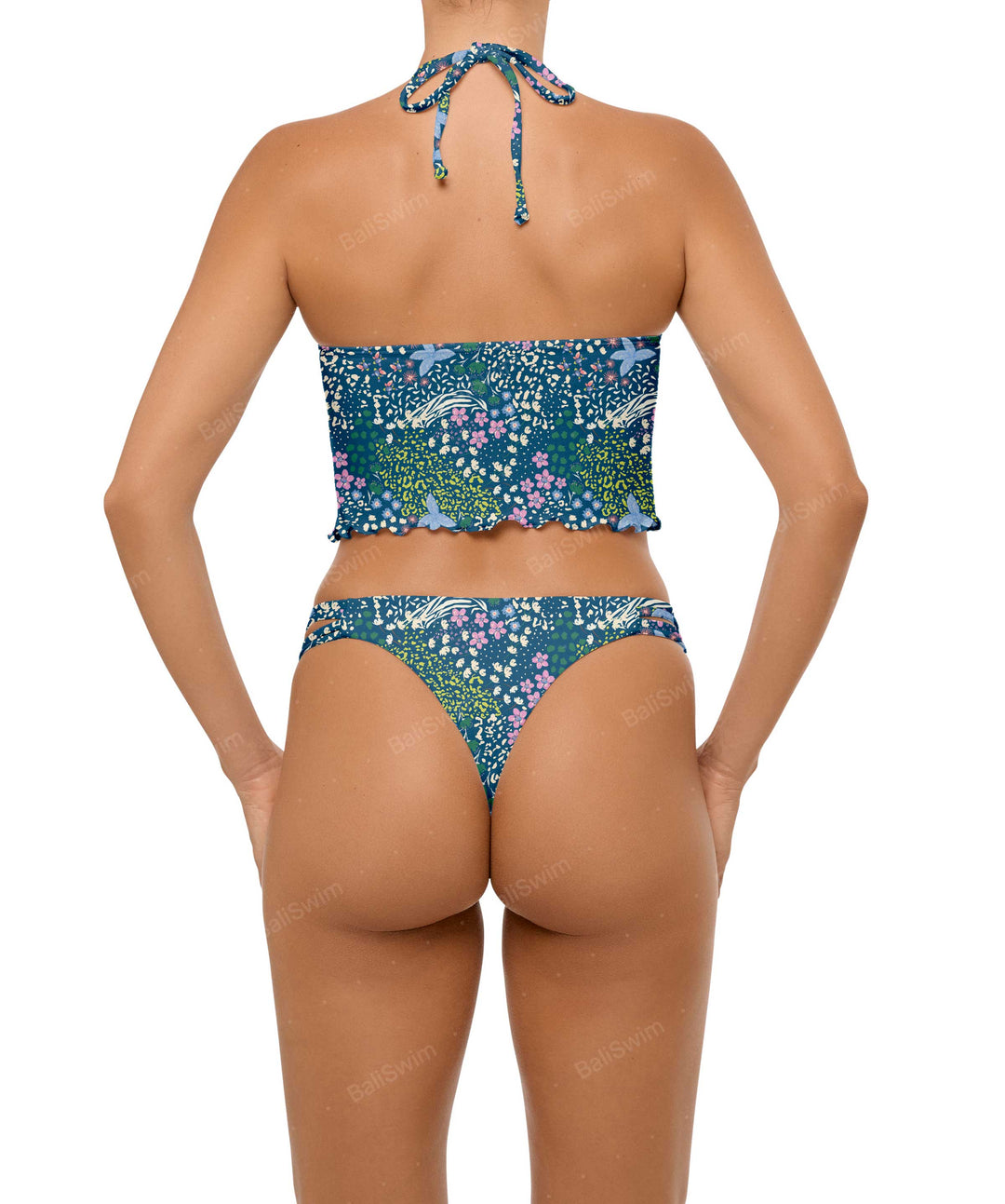 - Detail Feature: Tankini camisole style, Halter Neckline, High neck, Adjustable tie closure