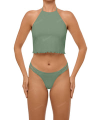 - Detail Feature: Tankini camisole style, Halter Neckline, High neck, Adjustable tie closure
