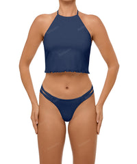 - Detail Feature: Tankini camisole style, Halter Neckline, High neck, Adjustable tie closure