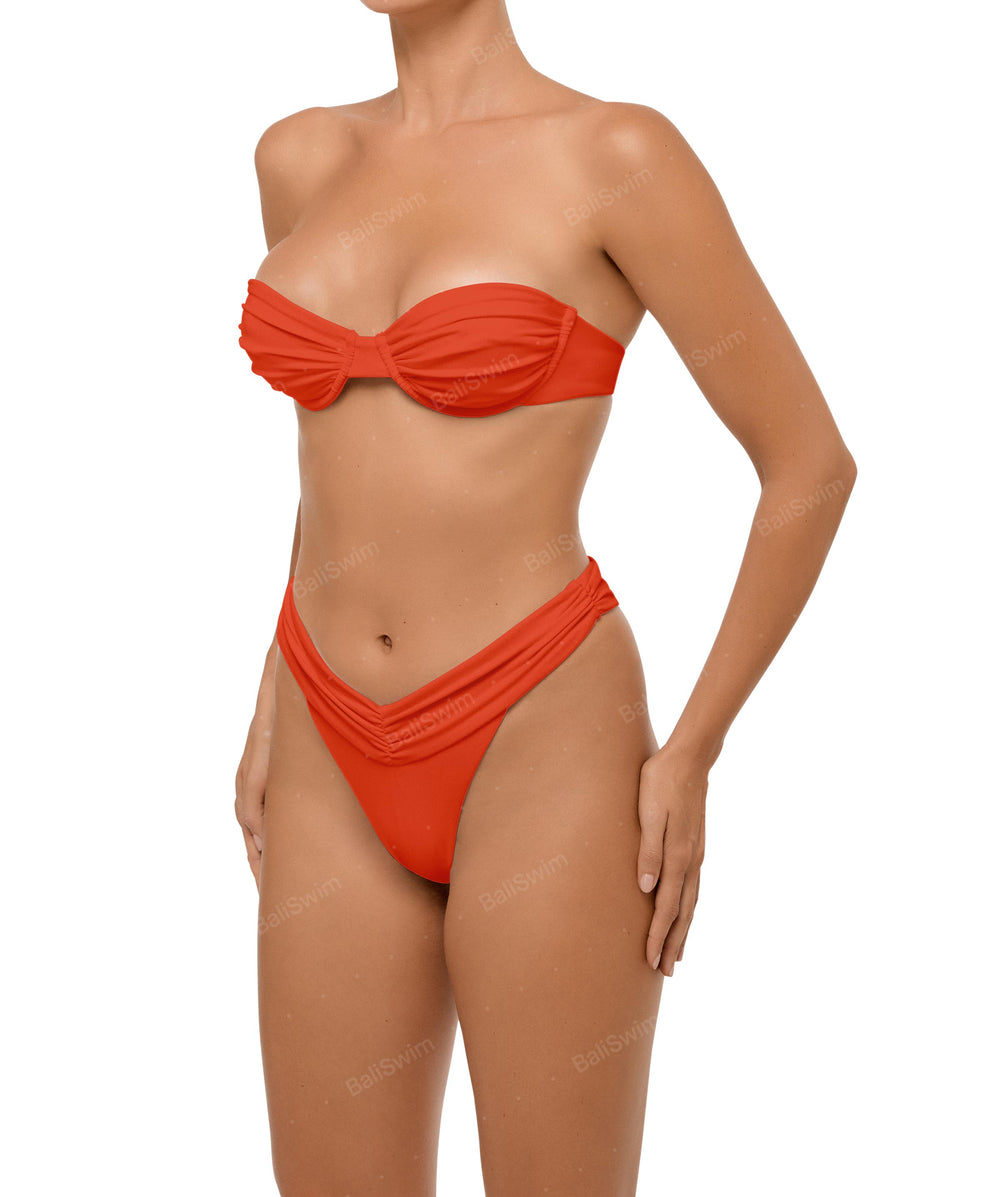 - Detail Feature: Ruched v-waist on side, Low rise, High cut, Brazillian style
