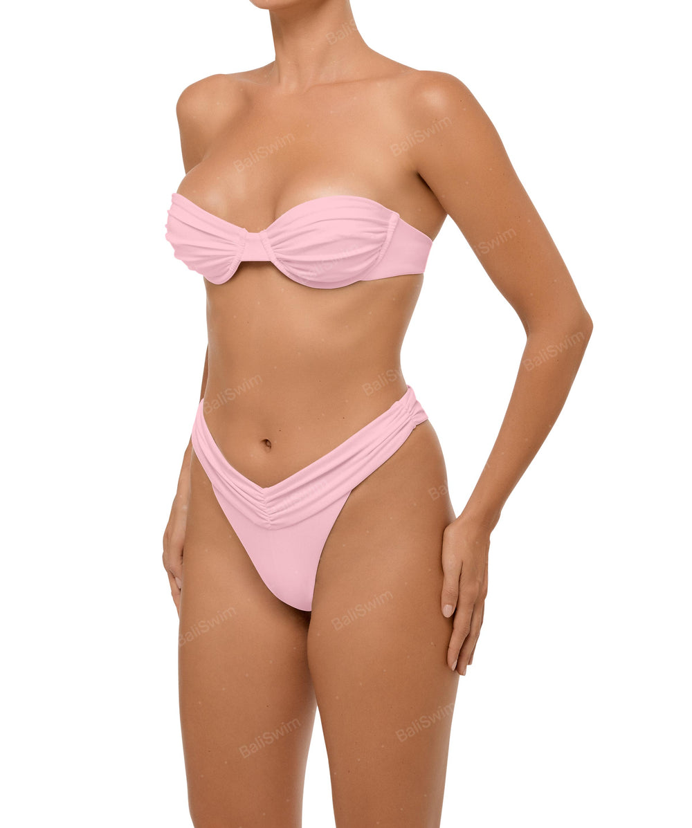 - Detail Feature: Ruched v-waist on side, Low rise, High cut, Brazillian style