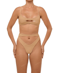 - Detail Feature: Hip cut out bikini bottom, High Rise, High cut
