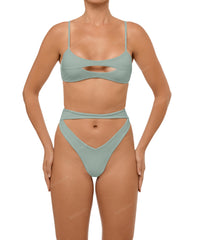 - Detail Feature: Hip cut out bikini bottom, High Rise, High cut
