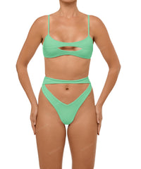 - Detail Feature: Hip cut out bikini bottom, High Rise, High cut